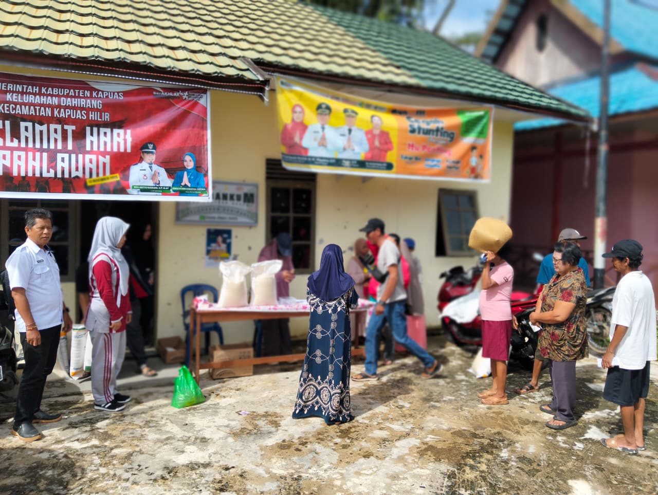KUALA KAPUAS, TABALIEN.com – Kelurahan Dahirang Kecamatan Kapuas Hilir melaksanakan kegiatan pembagian bantuan pangan berupa beras dan minyak goreng kepada masyarakat pada Jumat (21/11/2025). Bantuan ini disalurkan melalui Bulog Kabupaten Kapuas sebagai bagian dari program dukungan ketahanan pangan bagi warga yang membutuhkan.