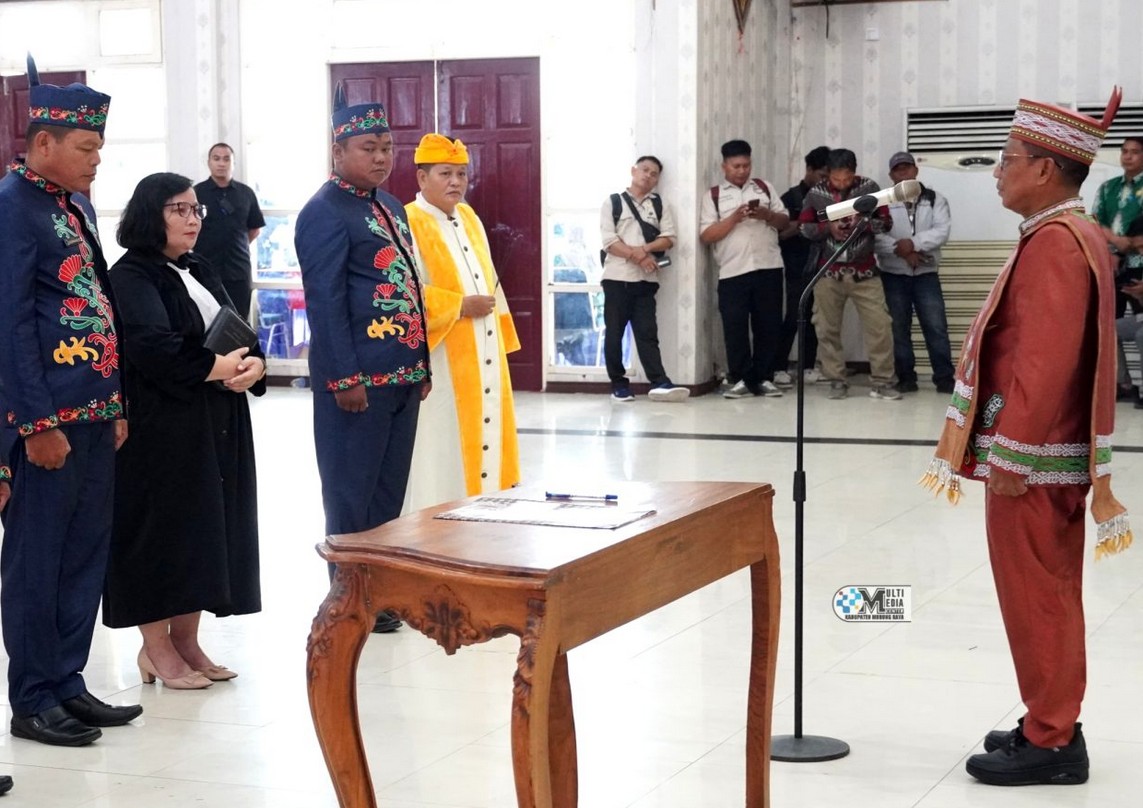 MURUNG RAYA, TABALIEN.com – Bupati Murung Raya (Mura), Heriyus, secara resmi melantik dan mengambil sumpah janji jabatan tiga Damang Kepala Adat untuk wilayah Kedamangan Sungai Babuat, Tanah Siang Tengah, dan Tanah Siang Timur. Prosesi berlangsung di GPU Tira Tangka Balang, Puruk Cahu, Selasa (28/10/2025).