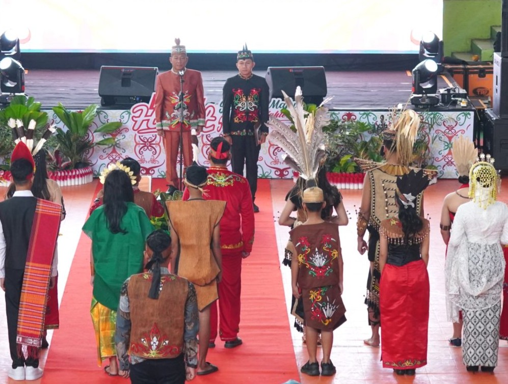 Bupati Murung Raya, Heriyus, bertindak sebagai pembina upacara dan menyampaikan amanat yang mengajak generasi muda untuk terus berinovasi dan menjaga integritas.