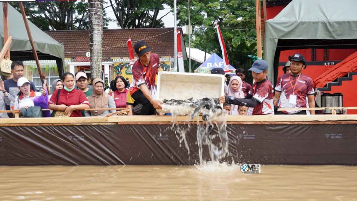 Namanya lomba mangaruhi, sebuah tradisi budaya Dayak menangkap ikan dengan tangan kosong di kolam berlumpur. Lomba ini diselenggarakan di Alun-alun Jorih Jerah, Puruk Cahu, Sabtu (9/8/2025).