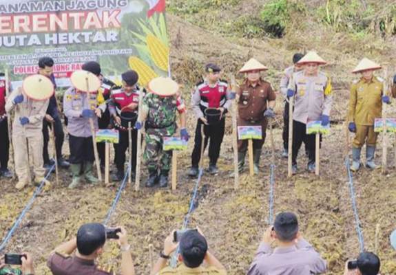 MURUNG RAYA, Tabalien.com – Dalam upaya memperkuat ketahanan pangan, Pj Bupati Murung Raya (Mura) Hermon bersama Kapolres Mura AKBP Irwansah dan Forum Koordinasi Pimpinan Daerah (Forkopimda) melakukan penanaman jagung serentak seluas satu juta hektare di Kecamatan Laung Tuhup, Selasa (21/1/2025).